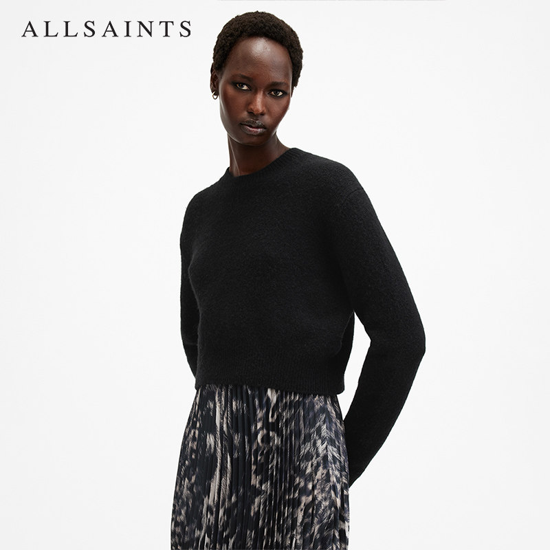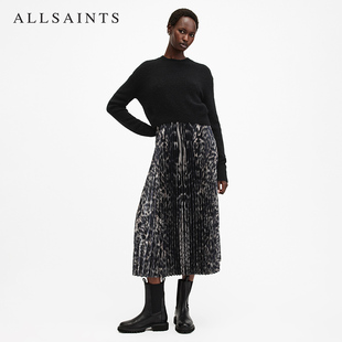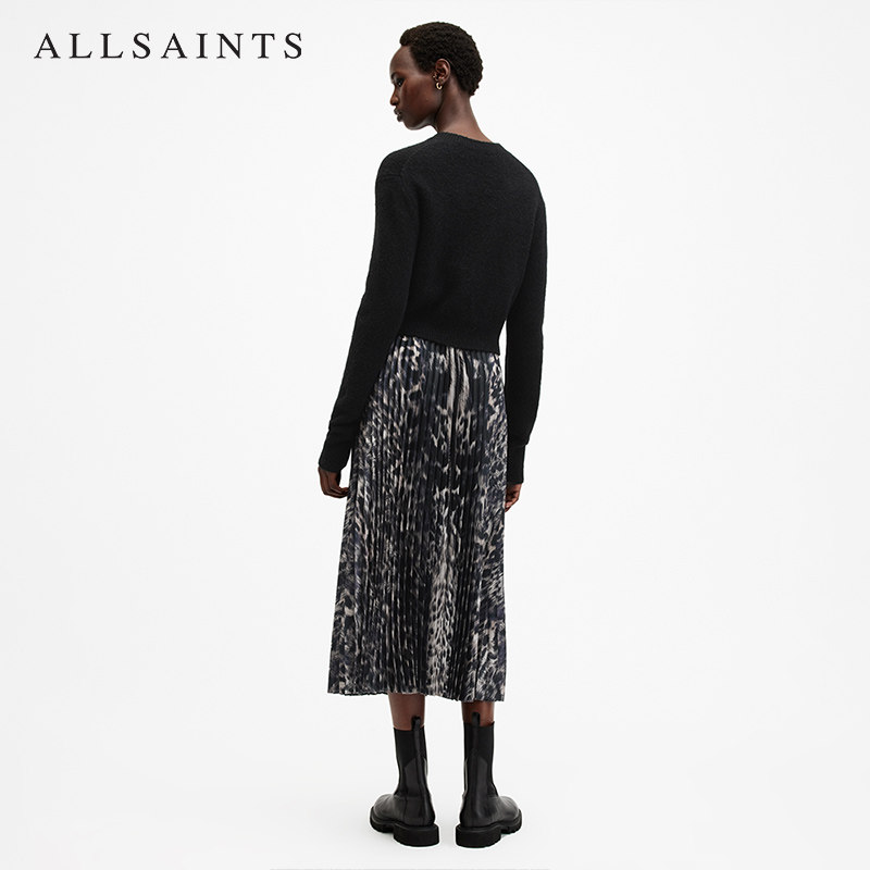 W186DB 百褶裙秋季 ALLSAINTS女士艺术豹纹连衣裙两件套裙装 羊毛衫