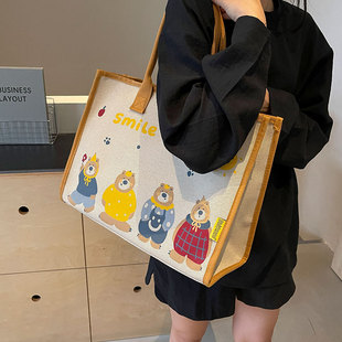 新款 大容量包托特包女士帆布包上班通勤PU面礼品包拉链百搭大号