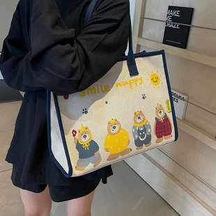 原创自制沈翊同款 休闲托特瑜伽学生文艺大容量单肩斜挎帆布包男女