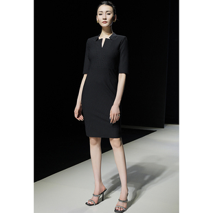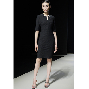 波点小黑裙女装 2025秋新款 裙中袖 包臀西装 连衣裙 通勤职业立领修身