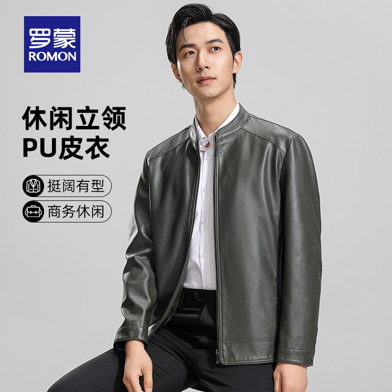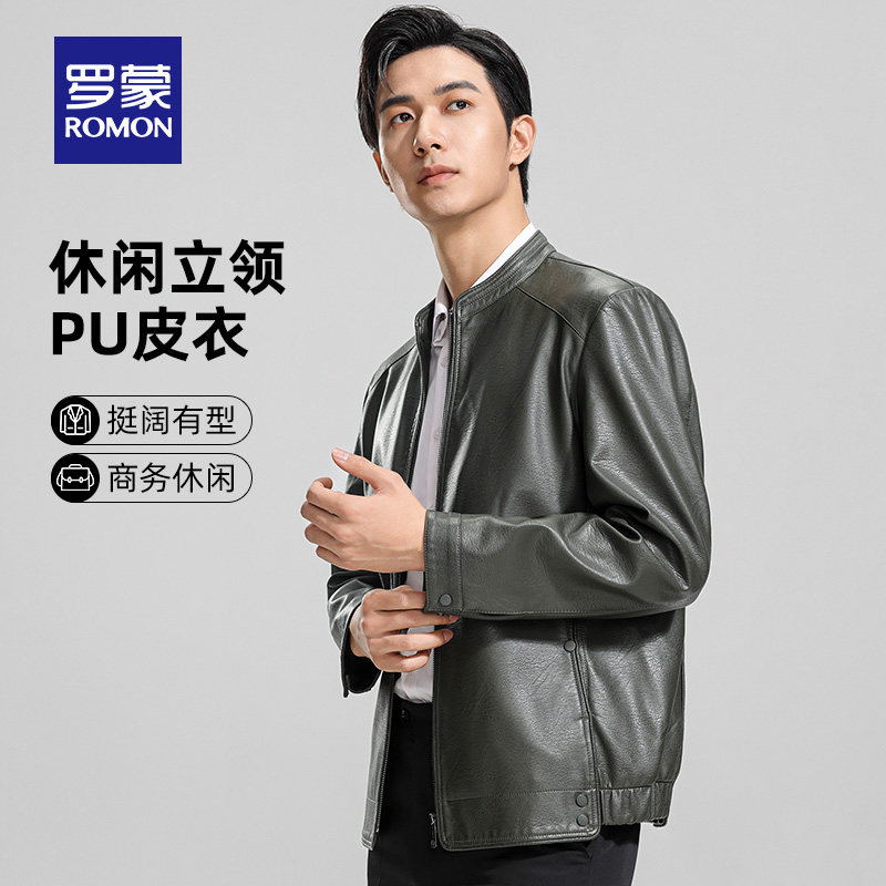 新款 罗蒙男士 立领PU皮衣2026春季 潮流短款 休闲百搭夹克外套男 时尚