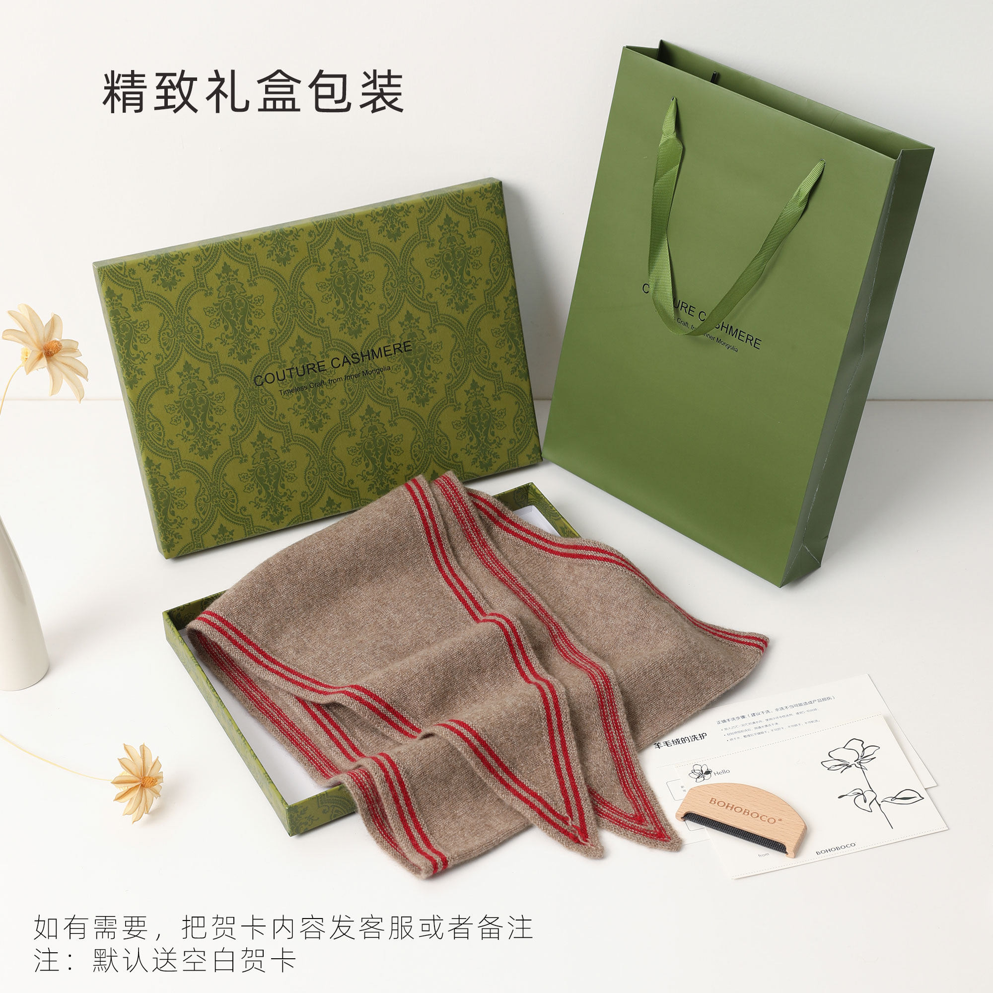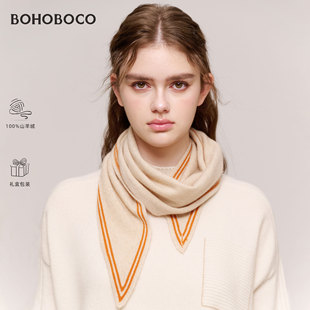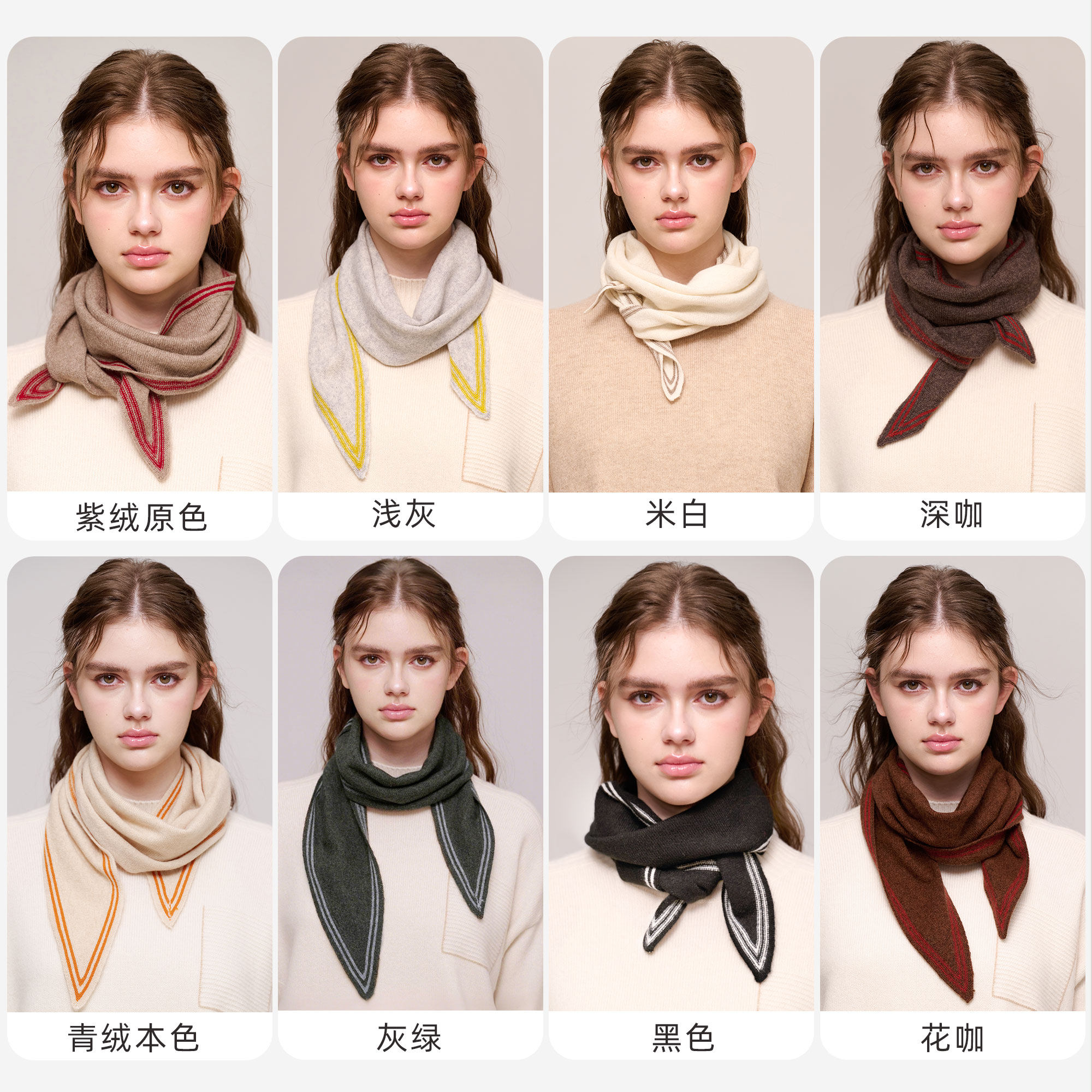 纯山羊绒三角巾小围巾女冬季 保暖轻奢围脖护颈针织菱形圣诞礼物盒