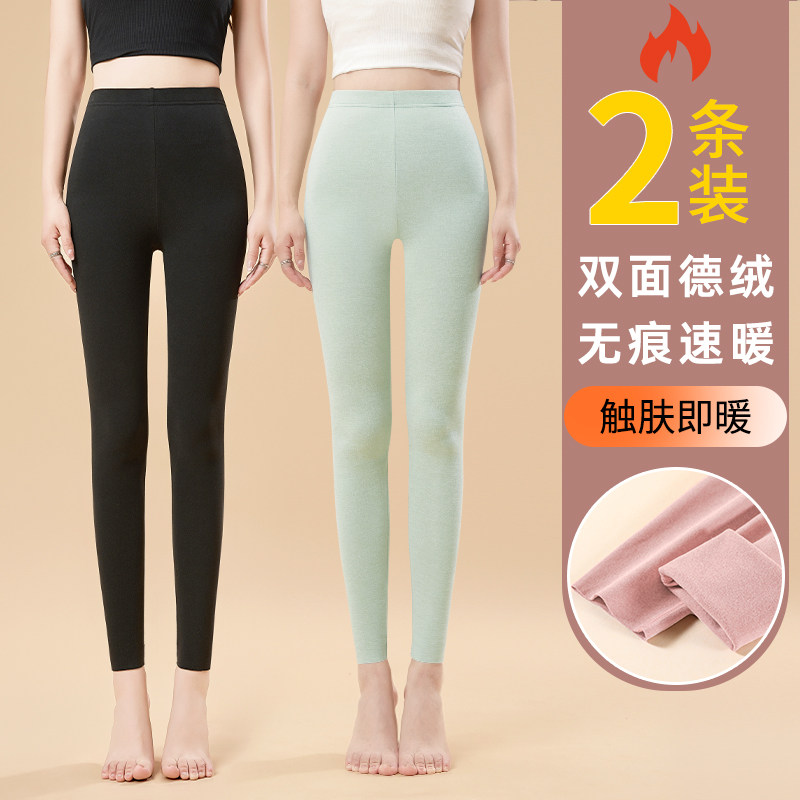 春秋棉毛裤 无痕德绒打底裤 线裤 女士秋冬加绒保暖衬裤 内穿紧身秋裤