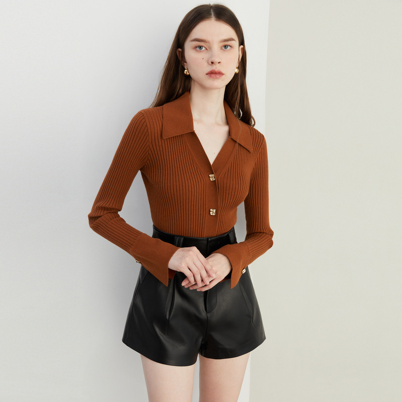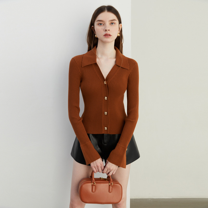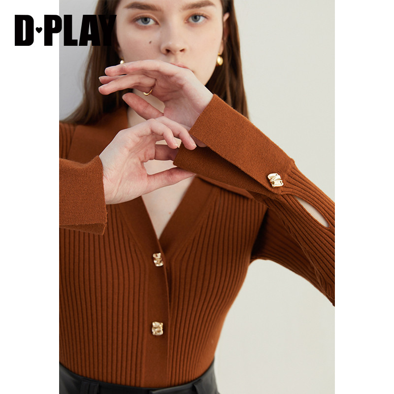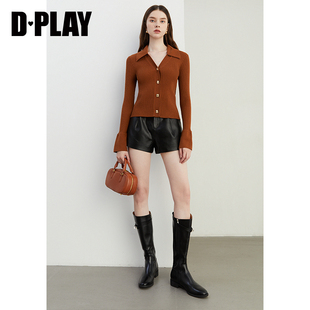 长袖 DPLAY美拉德焦糖咖色开衫 polo领针织衫 修身 上衣 女25冬新款