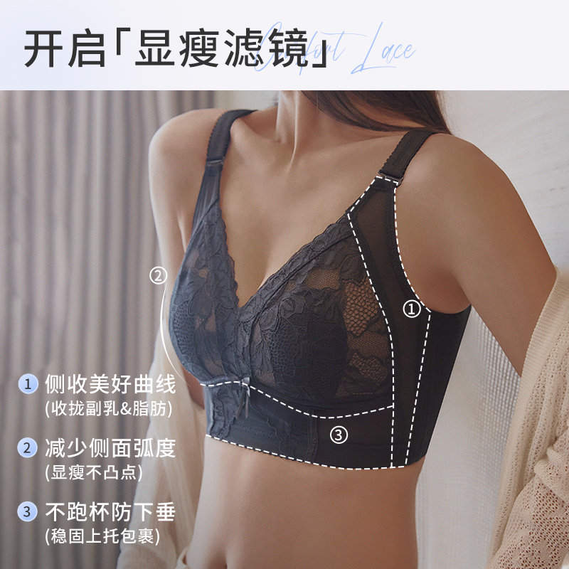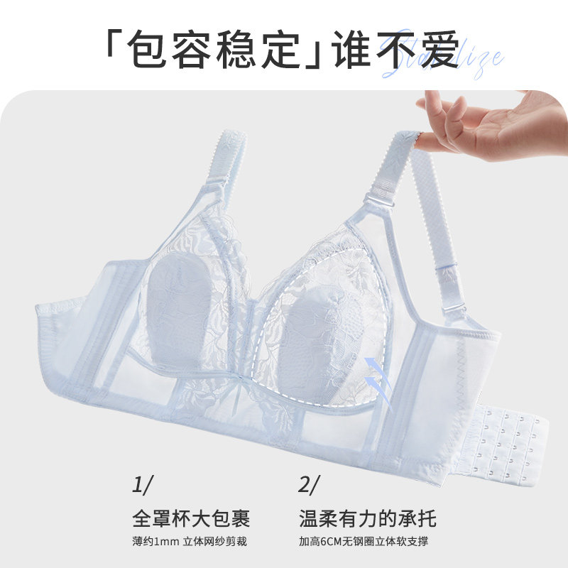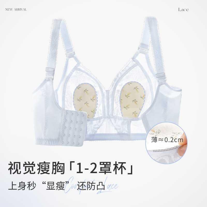 超薄 显瘦防下垂文胸夏季 大胸显小性感蕾丝大码 内衣女全罩杯超薄款