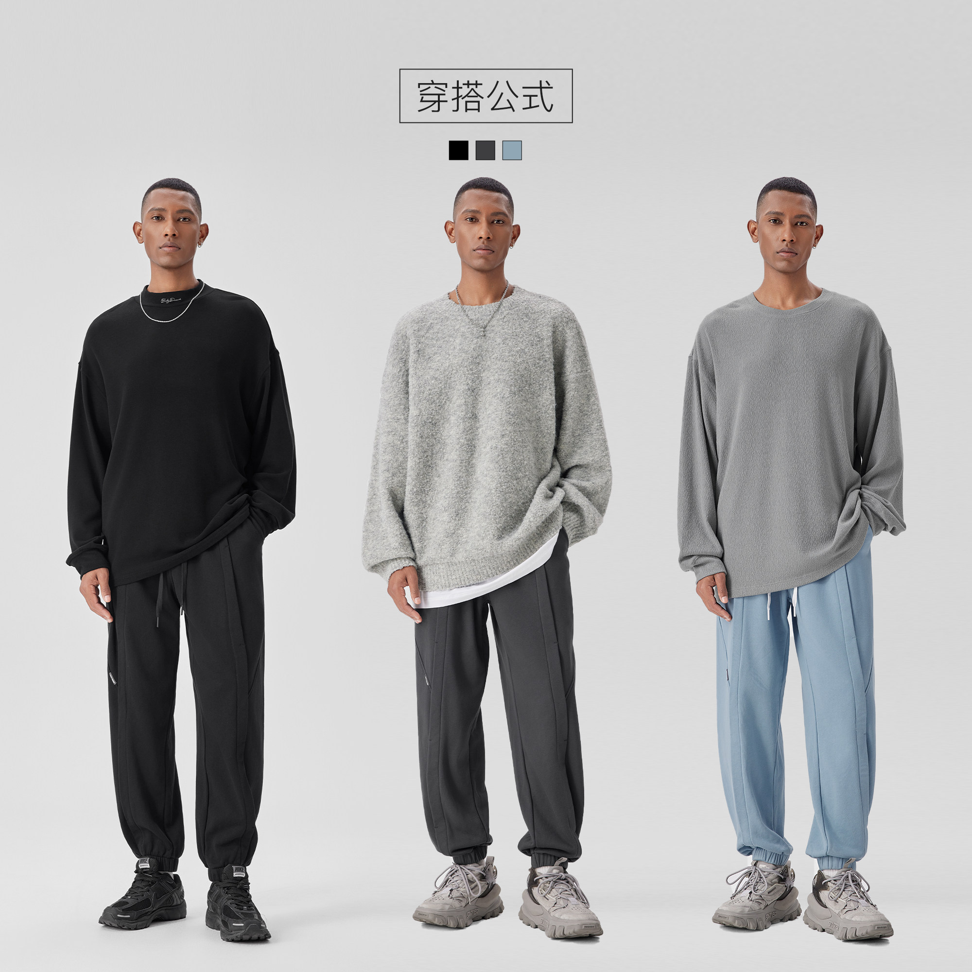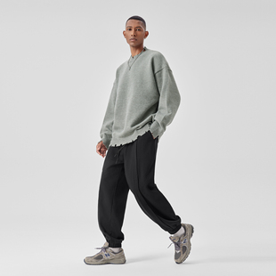百搭休闲针织长裤 宽松卫裤 男新款 BODYDREAM拼接活褶束脚运动裤