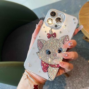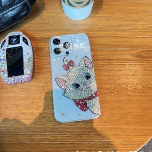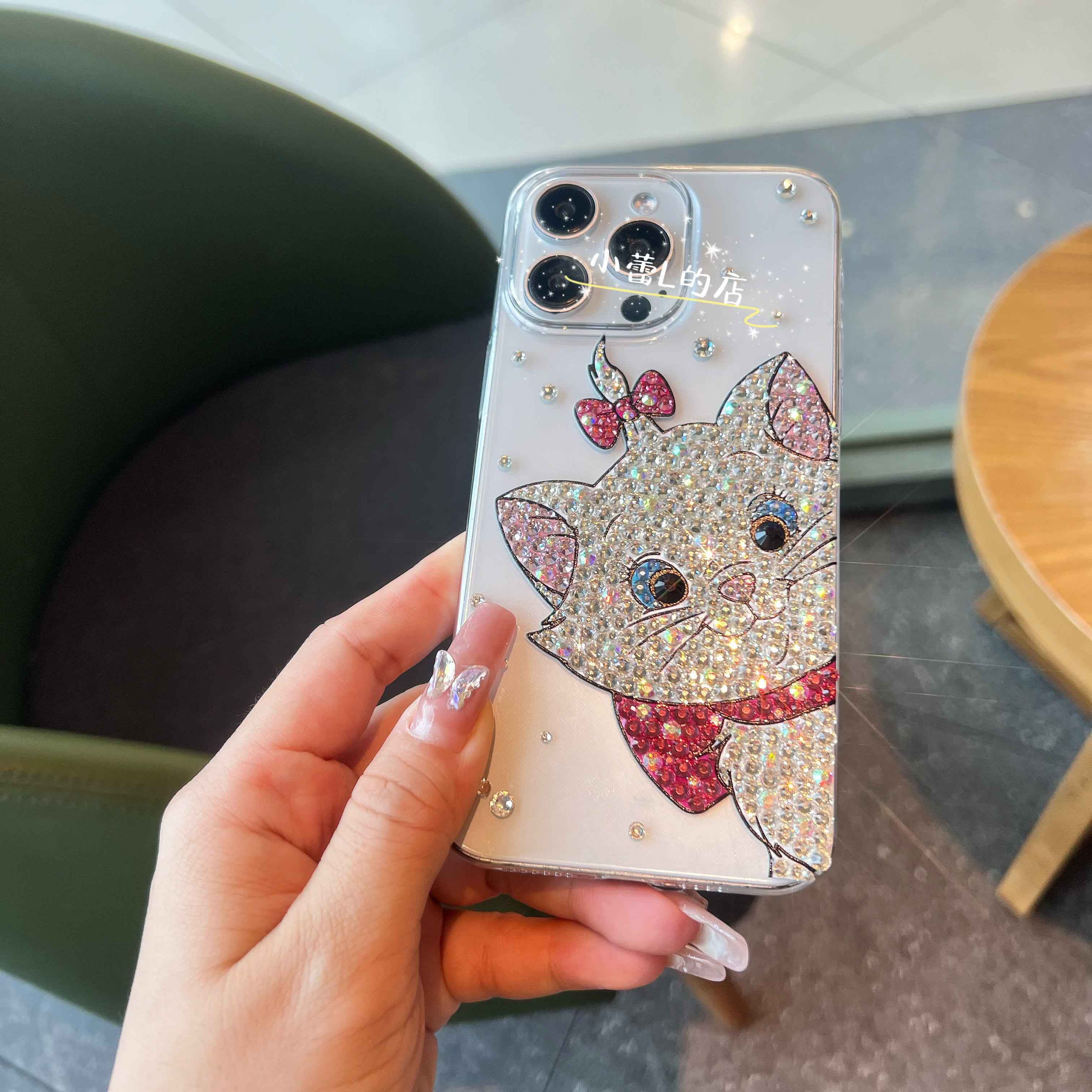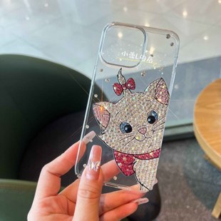可爱玛丽猫猫咪水钻透明贴钻手机壳适用14苹果16promax华为15pro