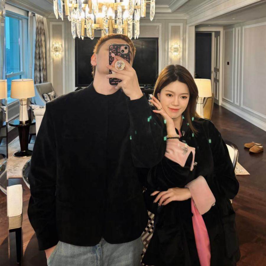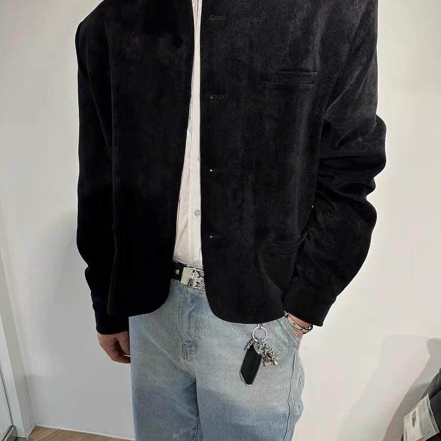 外套 兰花银扣垫肩复古水洗灯芯绒中山唐装 黑色圣诞树24FW 新中式