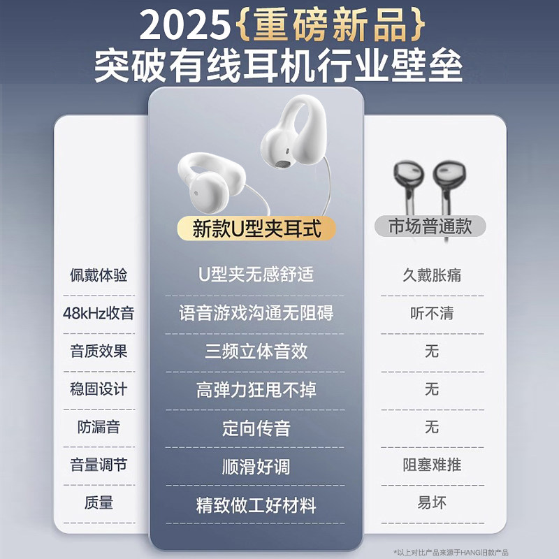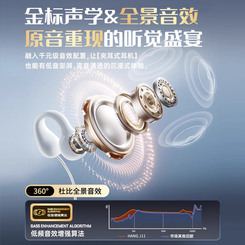 夹耳式 16骨传导ipad扁头 TypeC耳机有线不入耳适用于苹果iPhone17