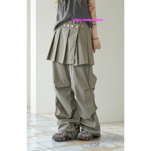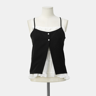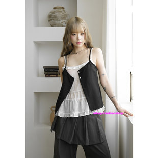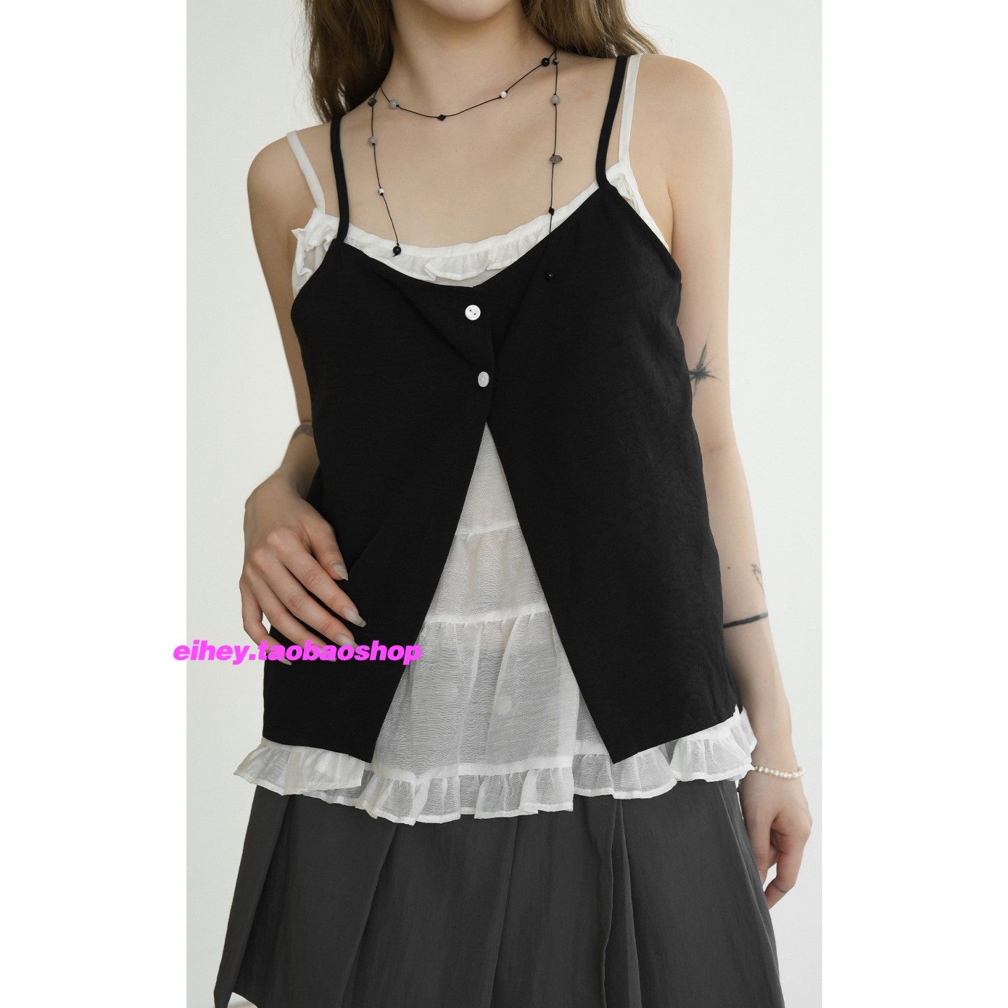 eihey诶嘿25夏季 拼接花边吊带背心女假两件上衣百搭褶皱休闲裙裤
