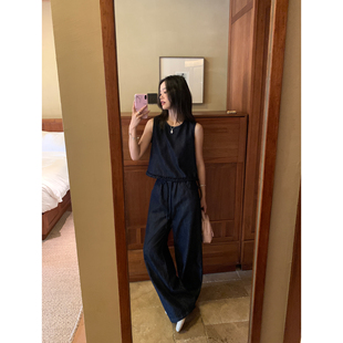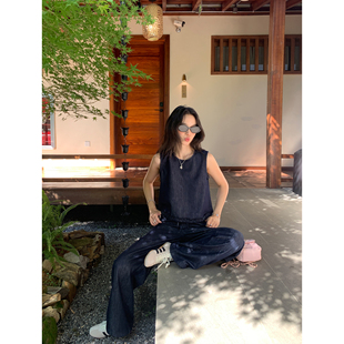 上衣&抽绳阔腿休闲裤 女宽松背心无袖 牛仔套装 pusumede丹宁艺术家