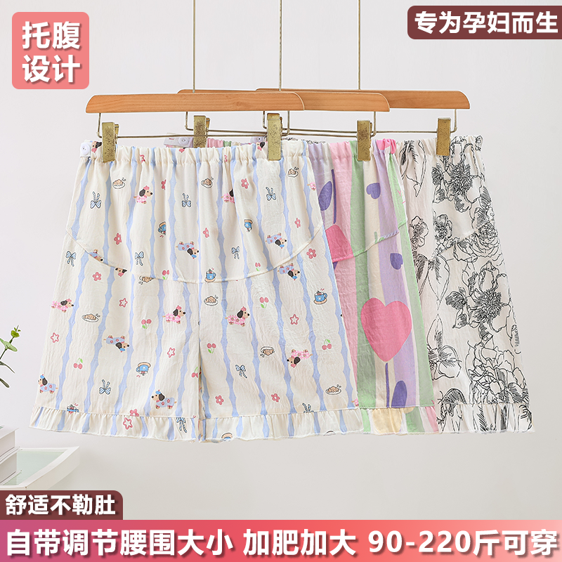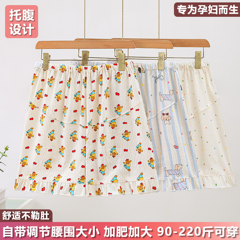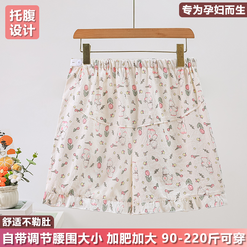 200斤孕妇家居短裤 怀孕期不勒肚高腰托腹睡裤 云朵棉大码 薄款 夏季