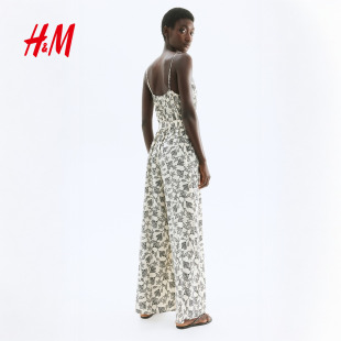 1295327 印花连身裤 HM女士连体衣春季 腰部系带时尚