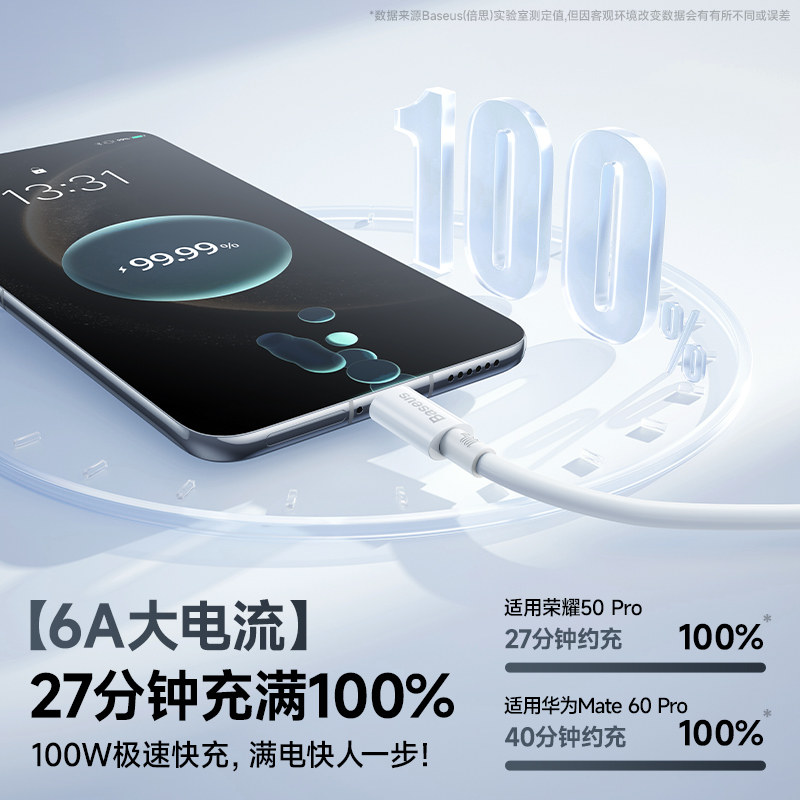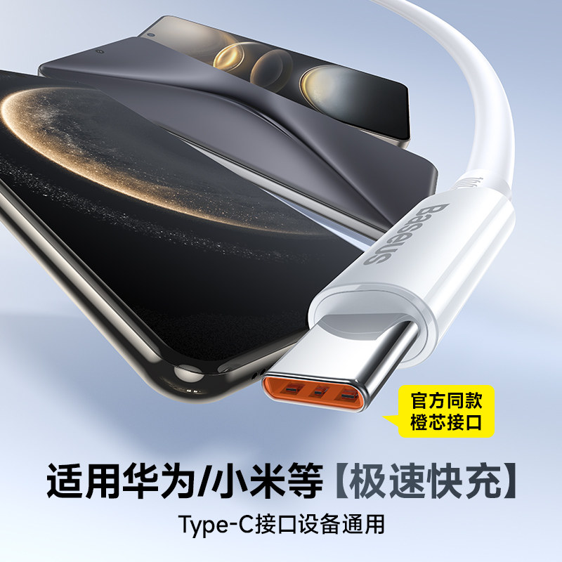 倍思type c数据线6a适用华为小米OPPOvivo闪充mate70pro充电线器100w88w66w超级快充tpyec手机安卓加长2米