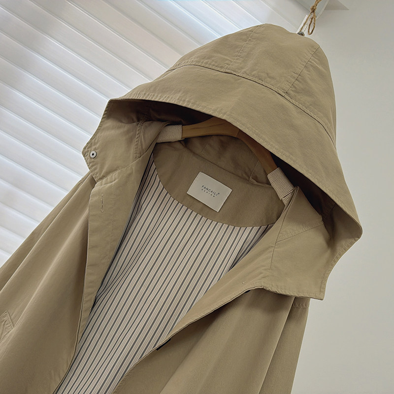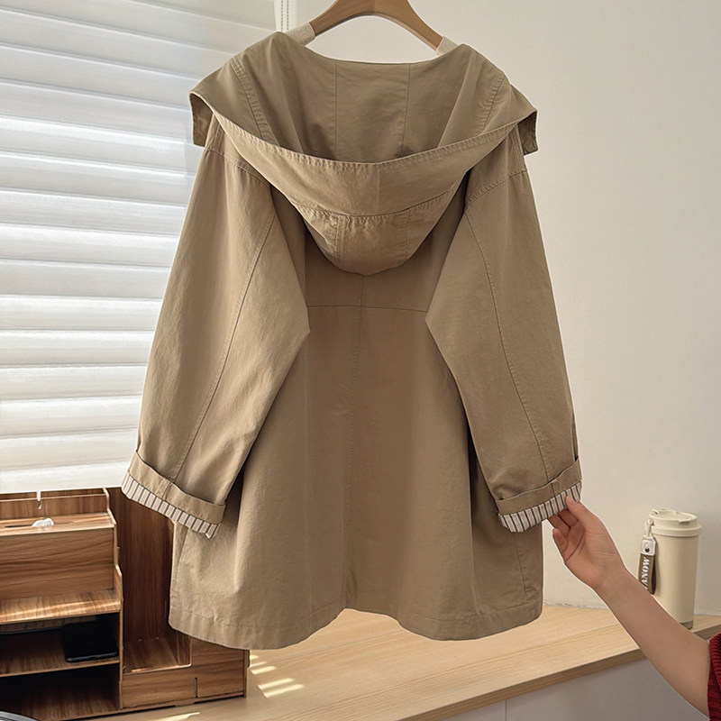 中长款 2026韩版 百搭长袖 新款 连帽风衣外套女 休闲纯色宽松上衣春季