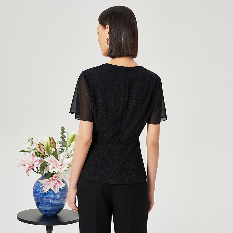 时尚 NAERSI 女夏季 短袖 百搭上衣 娜尔思简约气质圆领修身