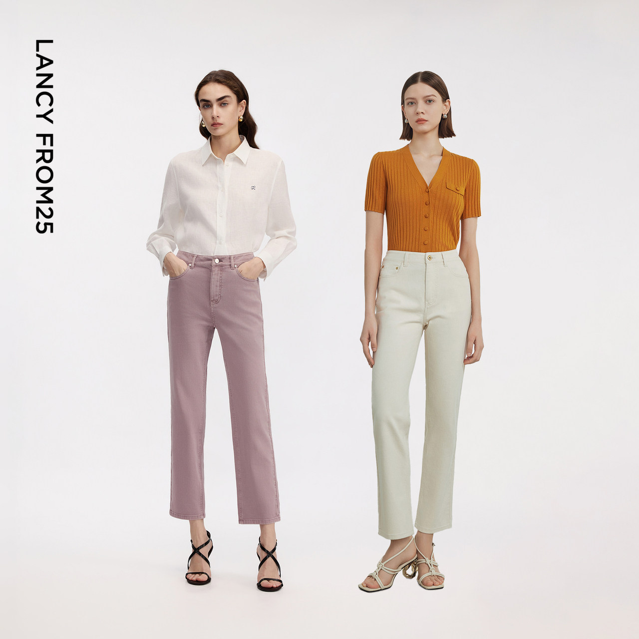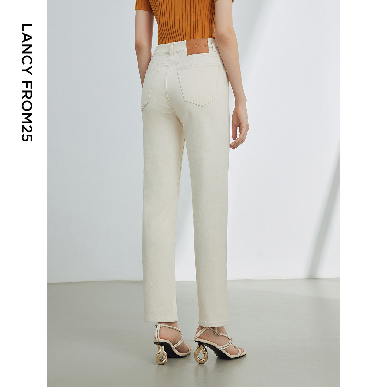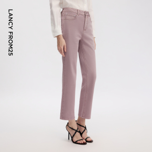 夏新款 朗姿25气质休闲白色显瘦牛仔裤 高腰直筒九分裤 明星同款