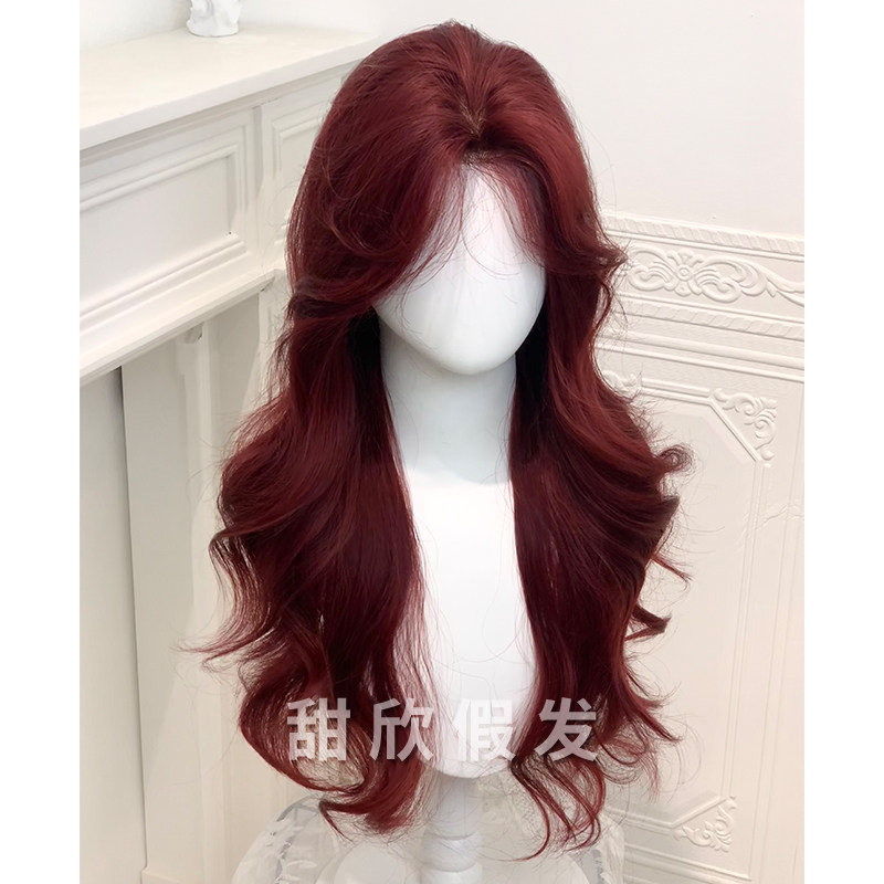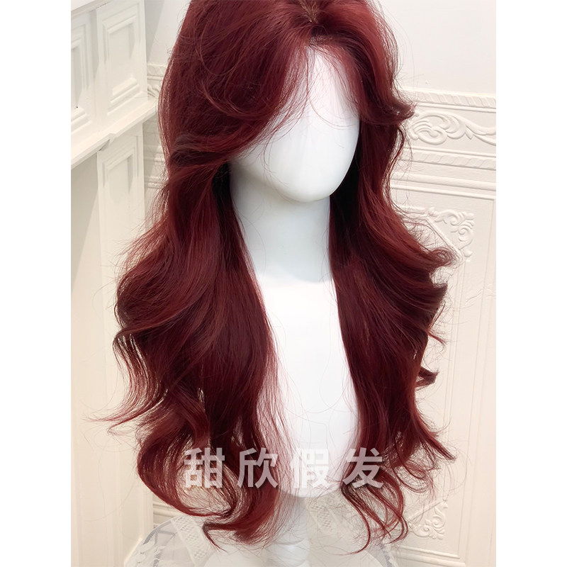 甜欣 假发女日常网红树莓红长卷发前额蕾丝中分刘海全头套 炽热