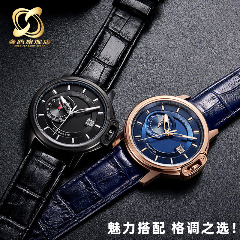 男士 适用罗西尼勋章系列 517793 8633 蓝色真皮替换表带21mm 5793