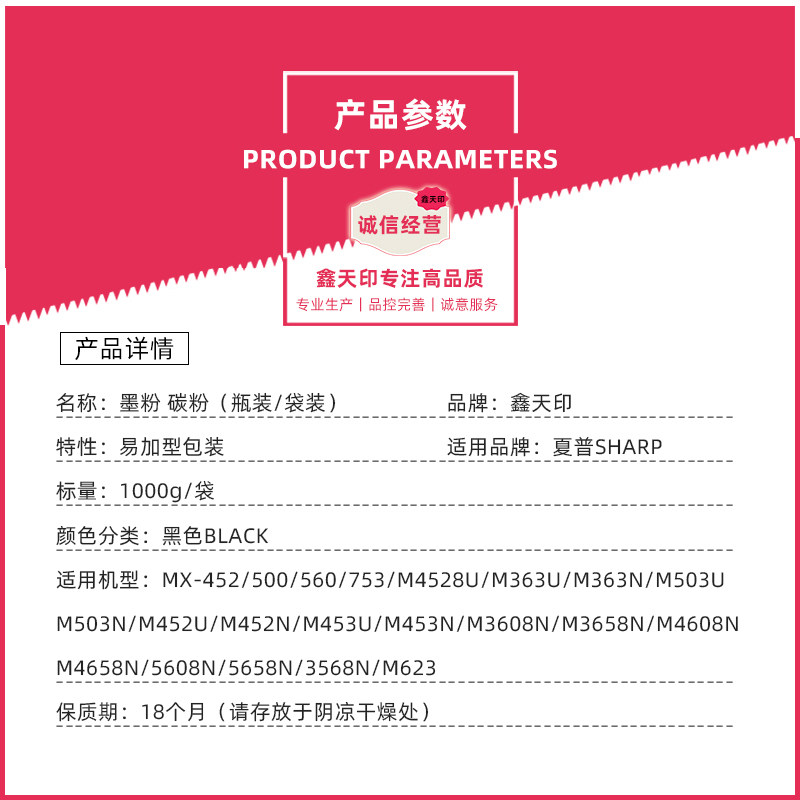 6508N复印机碳粉墨粉散粉1000克袋装 鑫天印适用夏普MX 复合机M6508 7508n数码 粉 754CT粉盒m7508