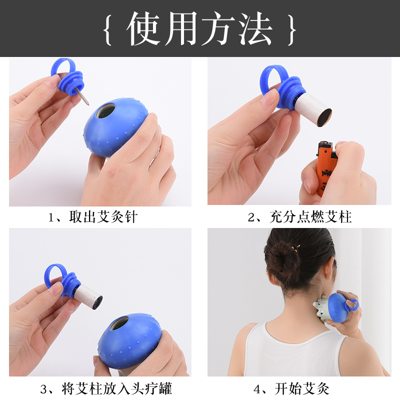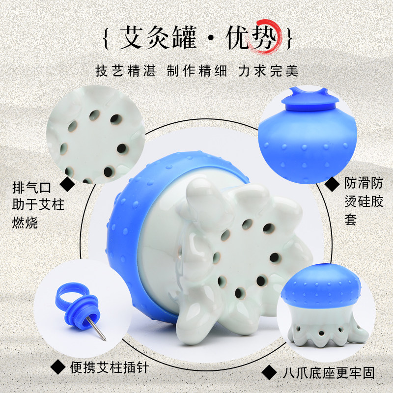 头疗仪陶瓷艾灸罐刮痧杯家用随身灸温灸器具便携式 艾灸盒头部按摩