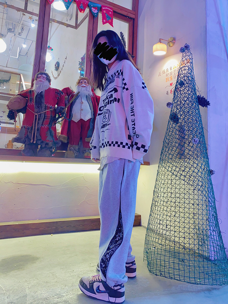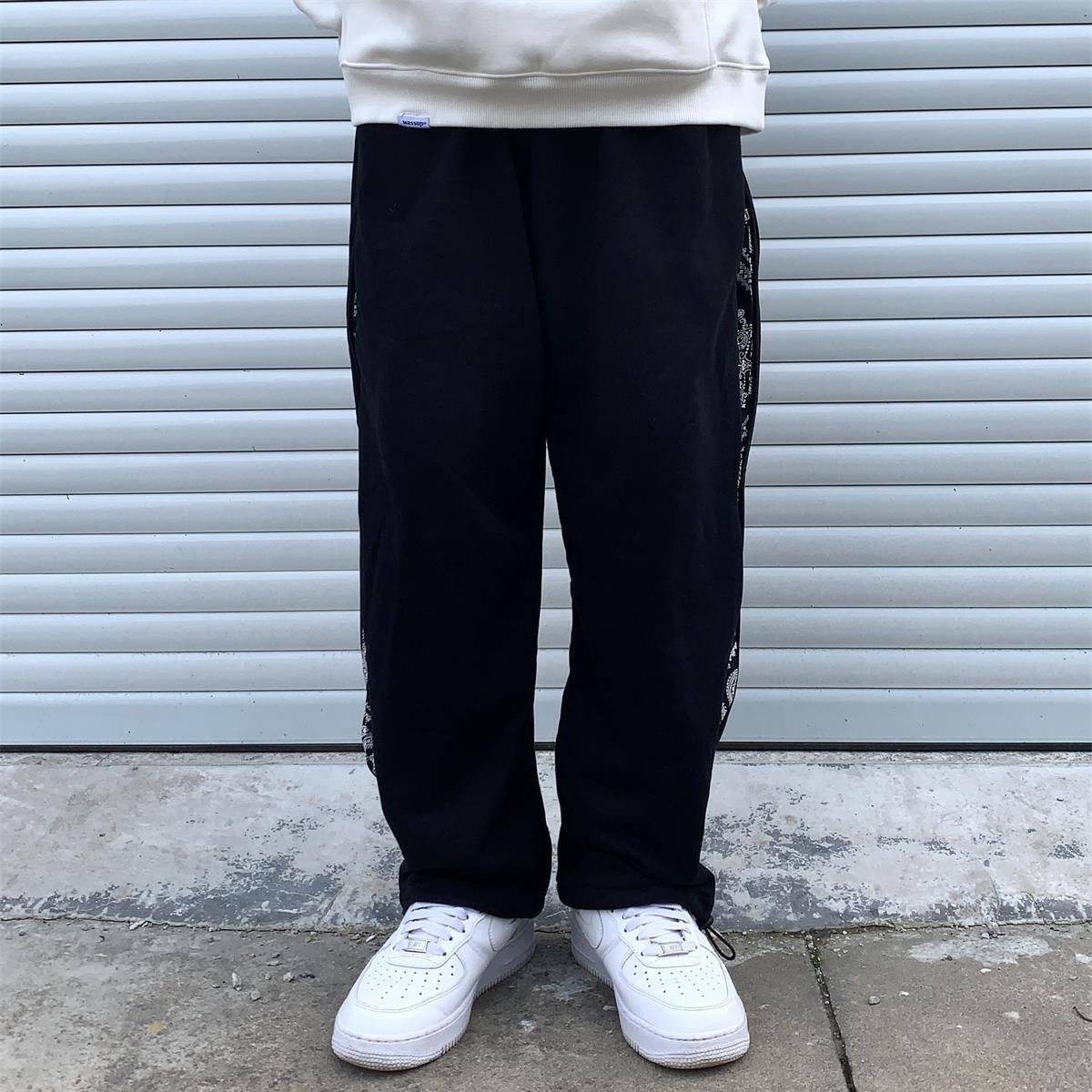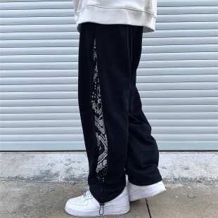 ICEREVERIE 潮牌拼接腰果花拉链直筒复古休闲宽松情侣抽绳束脚裤