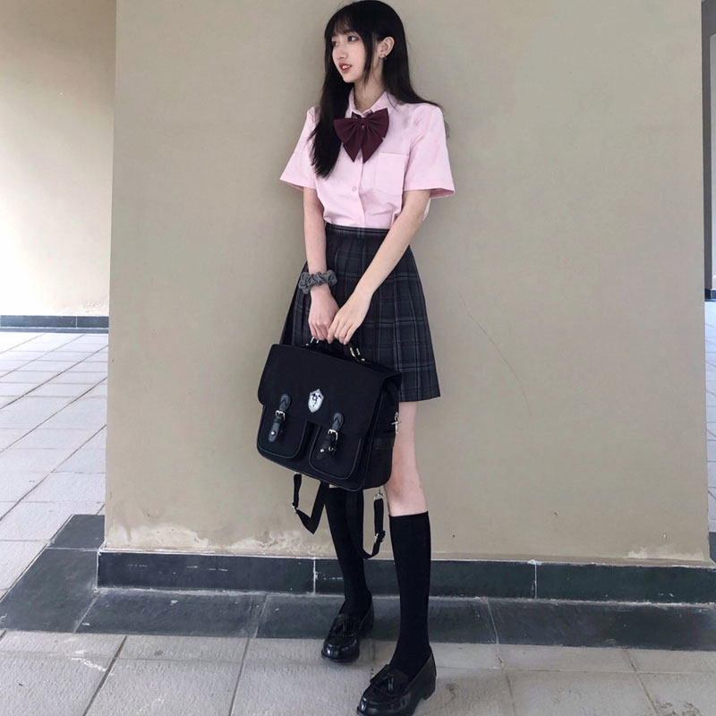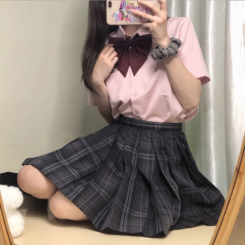 长袖 粉色短袖 少女百搭上衣衬衣丸襟角襟 女制服夏季 日本正统jk衬衫