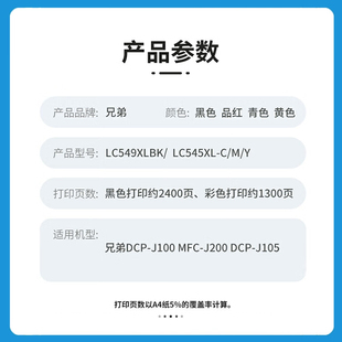 兄弟LC549XL MFC BK黑色545XL彩色墨盒DCP 105 J200墨盒 J100 原装