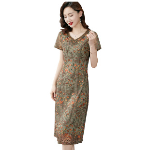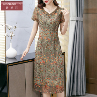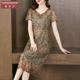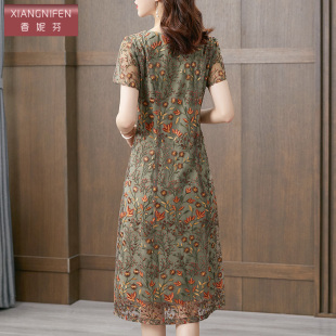 香妮芬重工刺绣高端妈妈休闲连衣裙女夏2026新款 遮肚显瘦 洋气修身