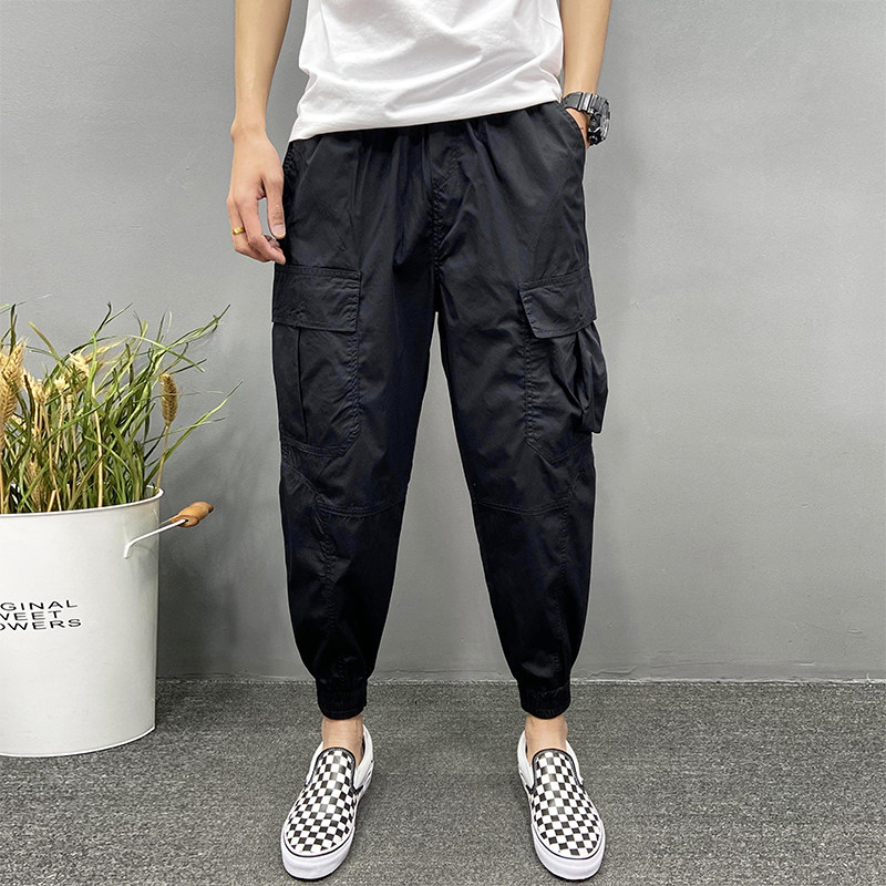 男潮牌宽松哈伦裤 裤 薄青少年束脚工装 潮流夏季 九分小脚 子男韩版