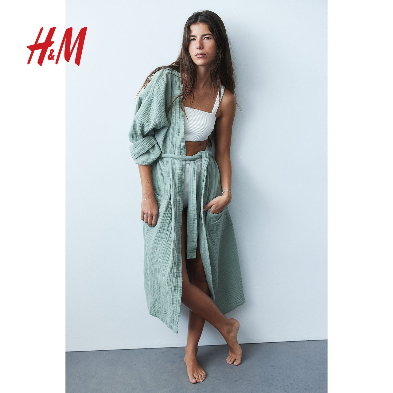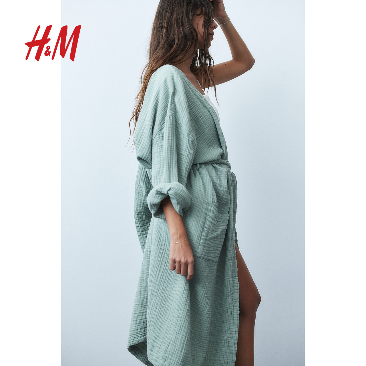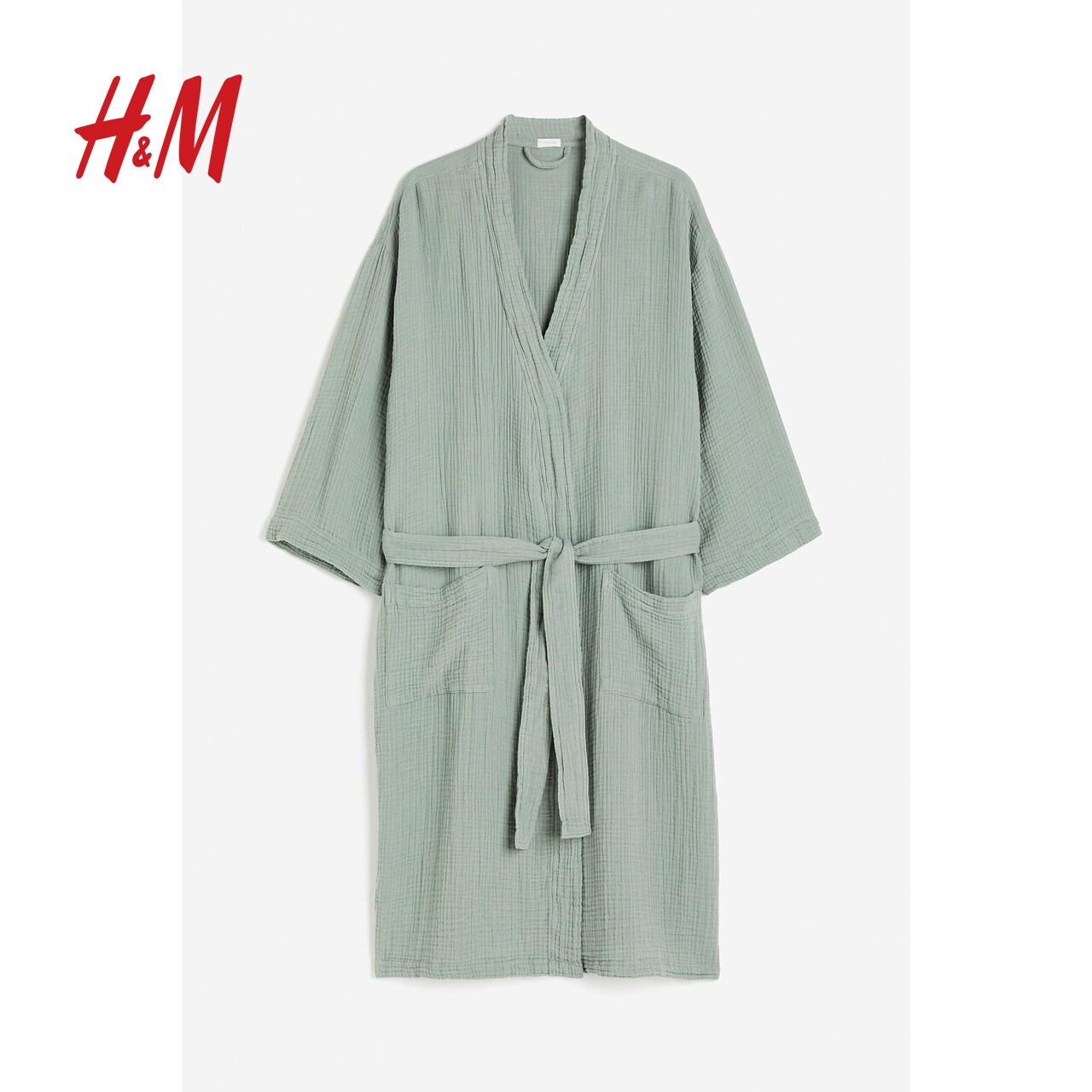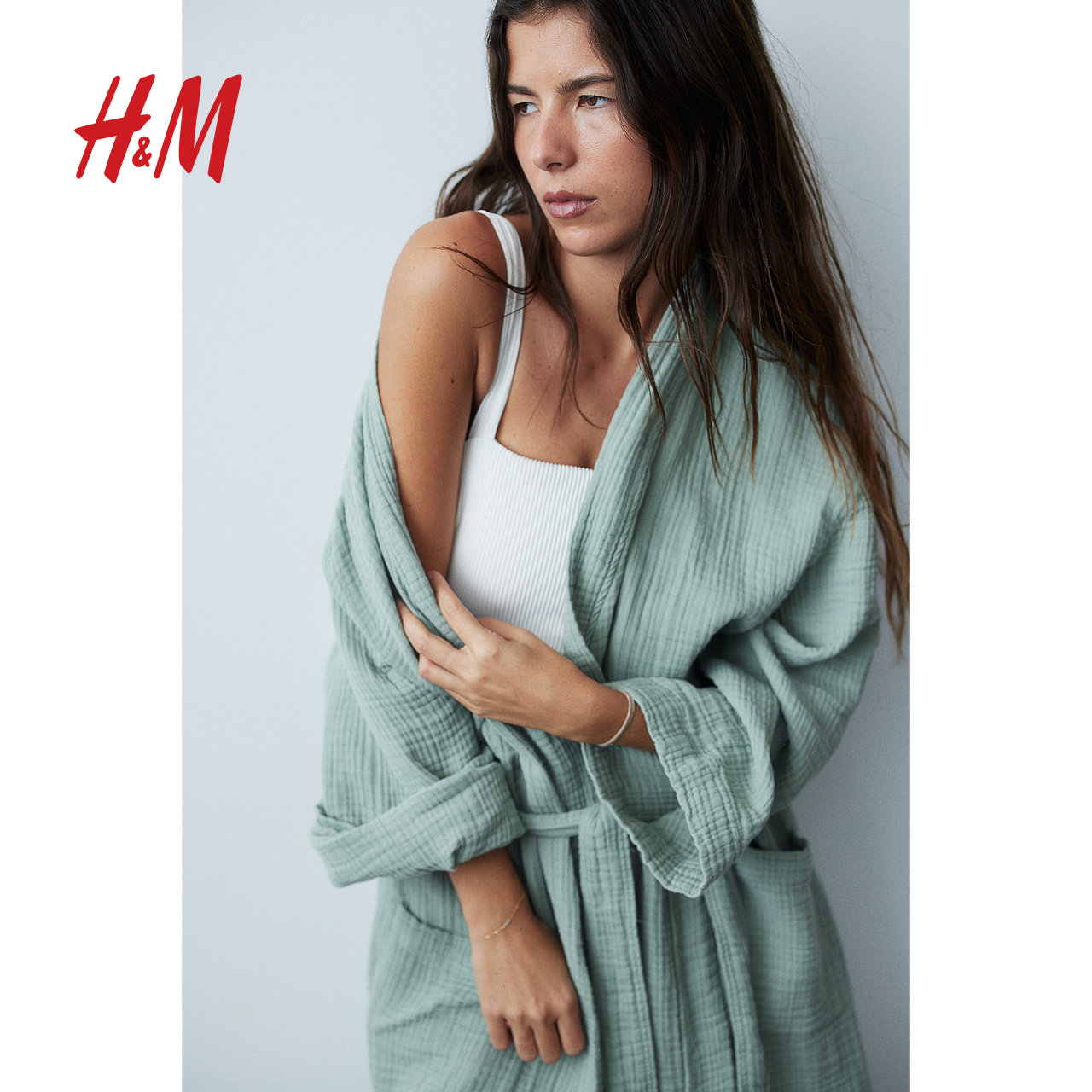HM女士内衣睡袍春季 系带细棉布睡袍1206055 舒适简约时尚