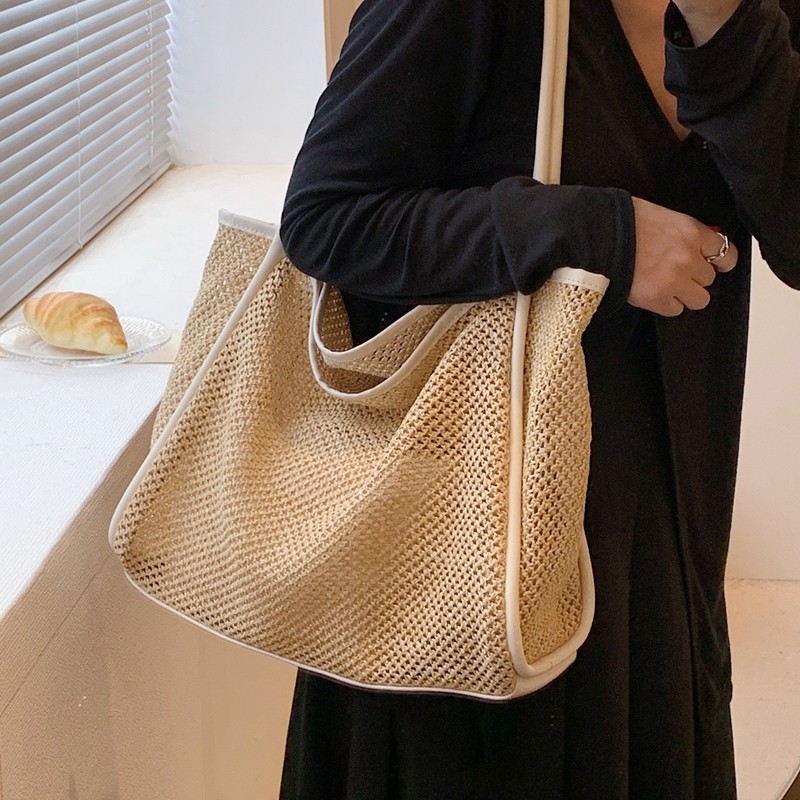 时尚 夏季 单肩包海边沙滩度假旅游托特包 编织草编包女2025新款 法式