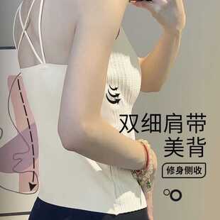四季 遮肚子百搭上衣女 显瘦打底吊带内搭外穿美背文胸一体白色长款