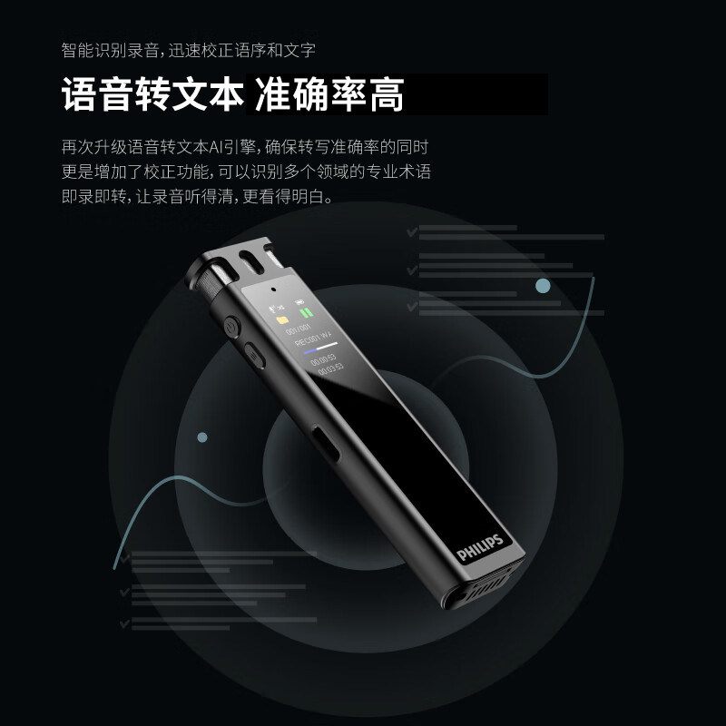 飞利浦VTR5260pro录音笔专业语音转文汉字智能高清降噪学生上课