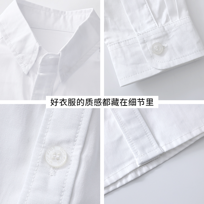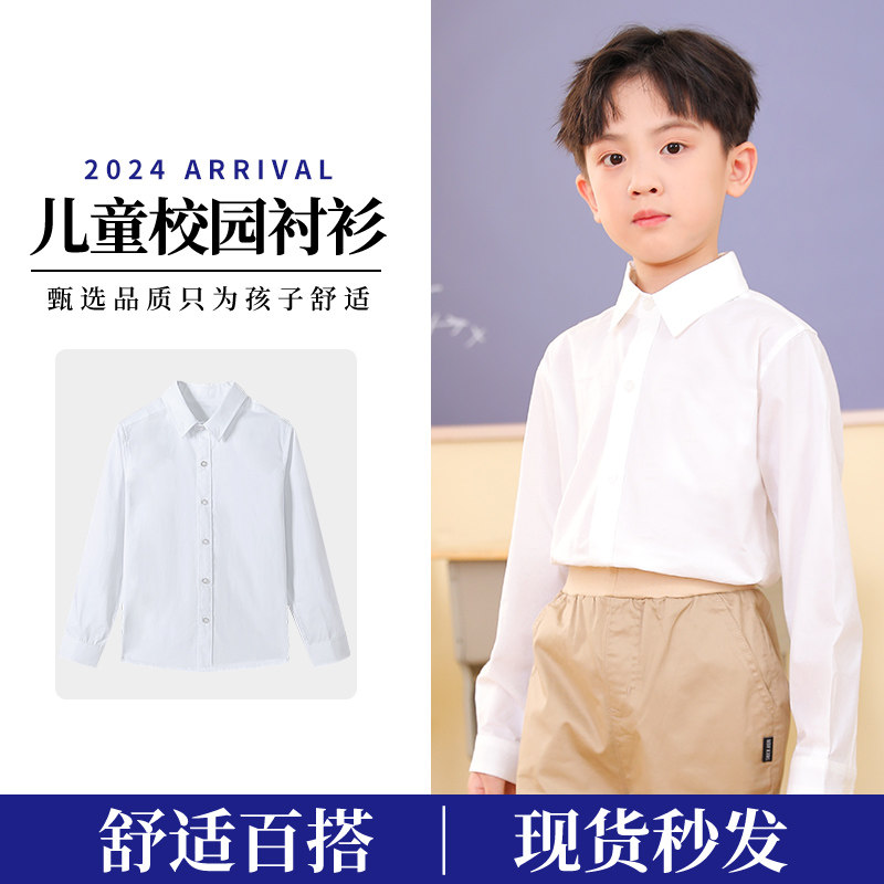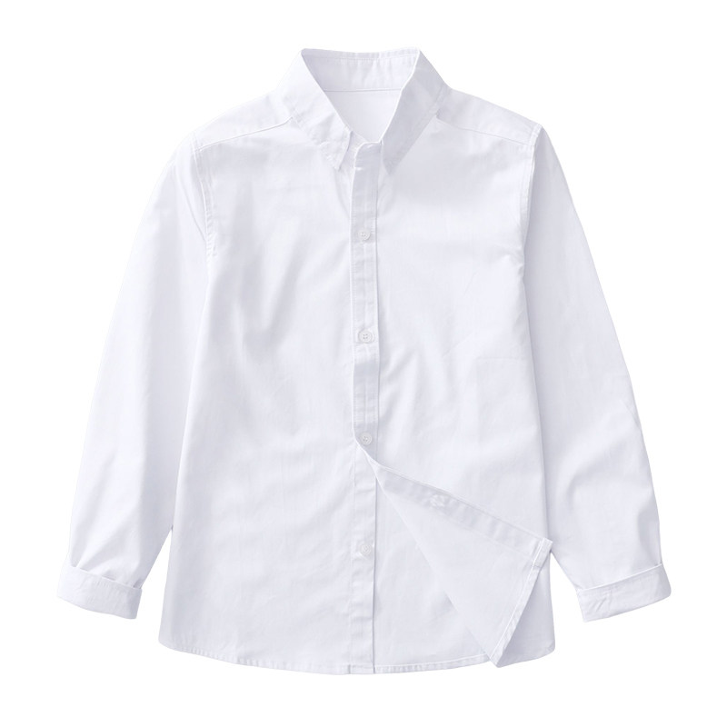 表演出 大童校服春秋款 儿童白色衬衣男童小学生男孩纯棉长袖 白衬衫
