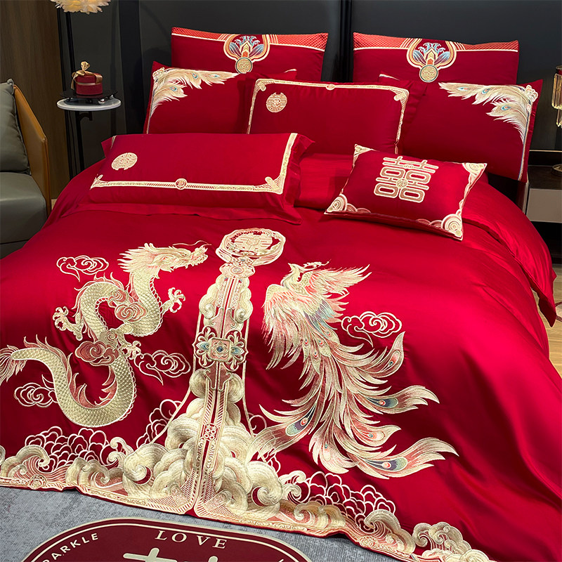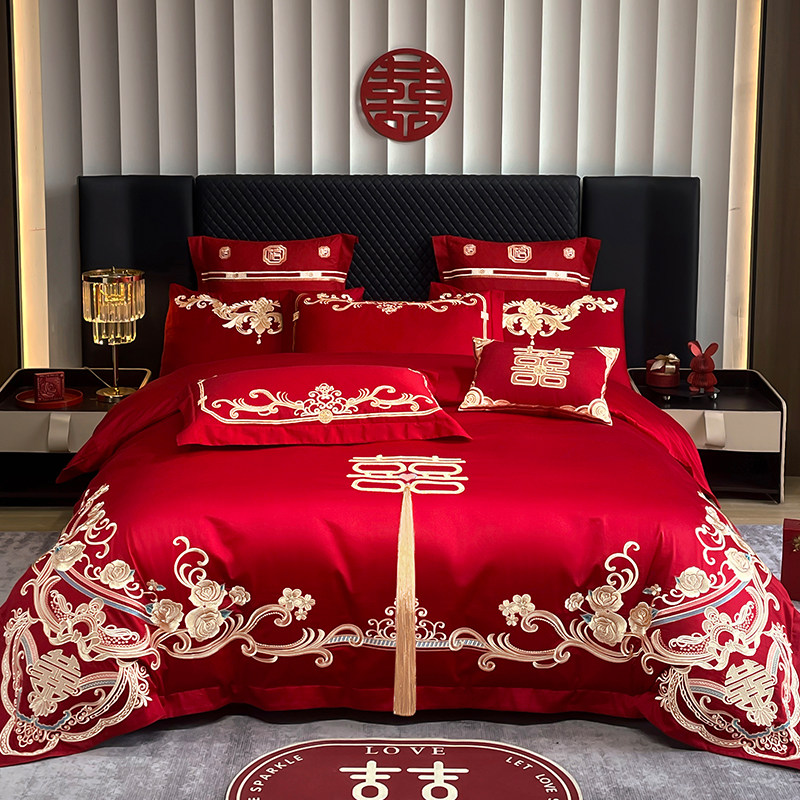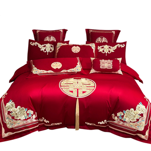 婚庆四件套婚嫁新婚床品刺绣被套红色结婚礼婚房婚床喜庆绣花套件