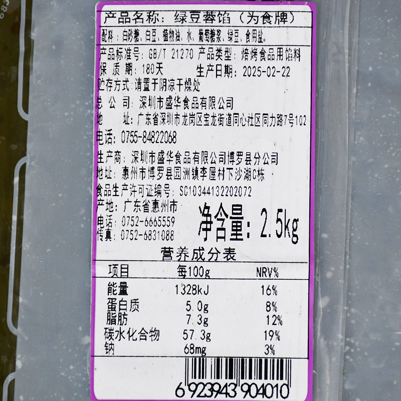 绿豆馅料颗粒商用盛华绿豆蓉馅料包子糕点绿豆沙糖水甜品烘焙原料
