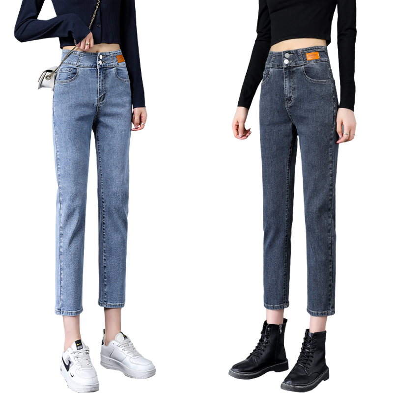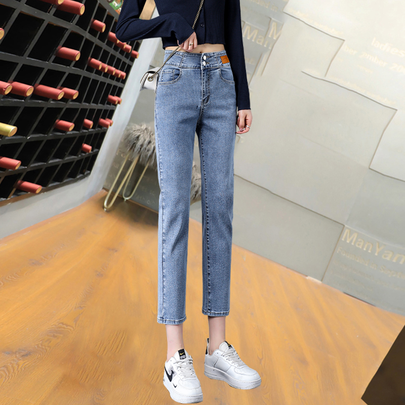 子 高腰直筒百搭拖地显瘦裤 橘子树在哪儿复古白色明线牛仔裤 女秋季