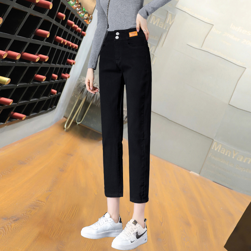 窄版 新款 阔腿裤 高腰马蹄裤 加绒松紧腰微喇牛仔裤 显瘦喇叭裤 女冬季