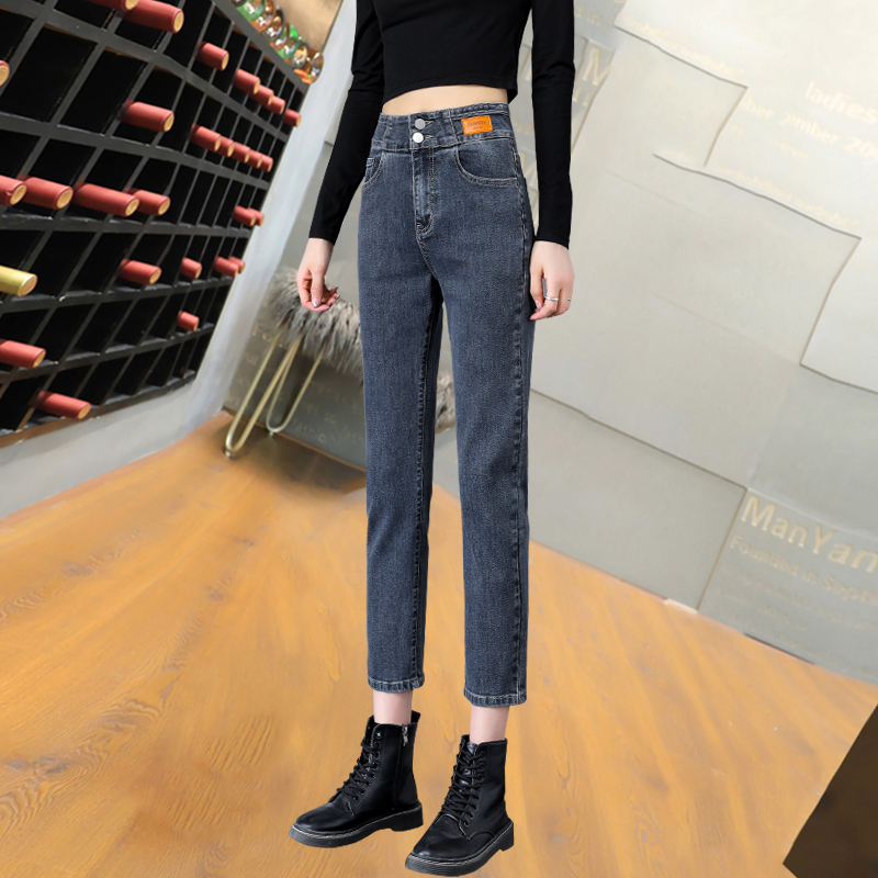 时尚 森柔牛仔 女士潮流秋休闲简约小直筒裤 女磨毛长裤 森马牛仔裤
