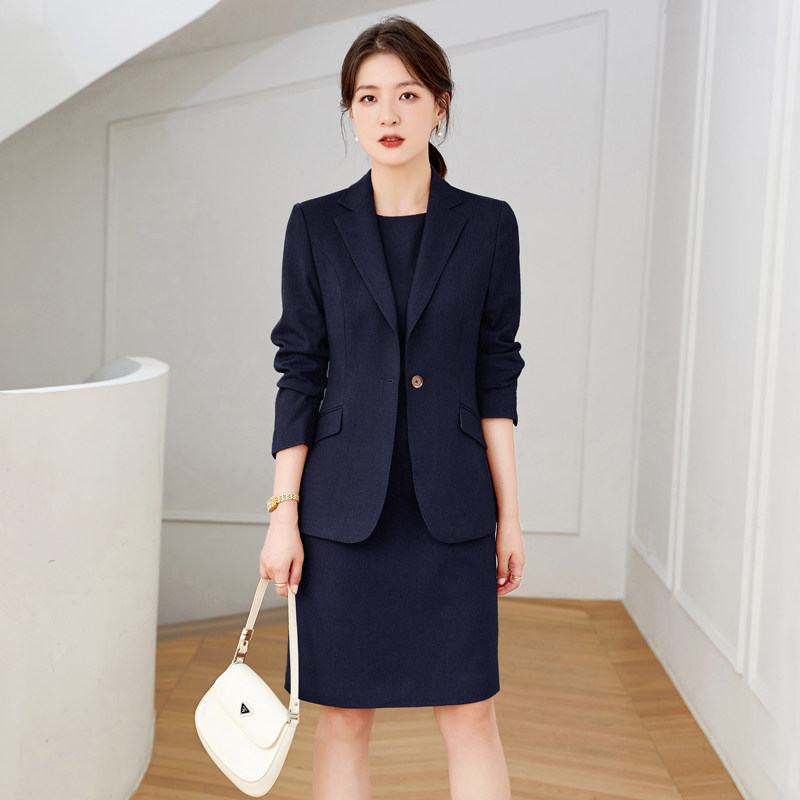 职业气质工作服套裙主持人 连衣裙秋冬新款 粉色西装 外套女无袖