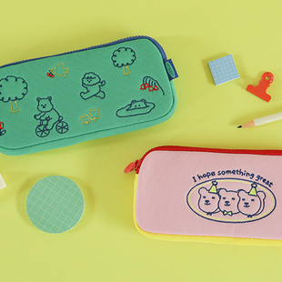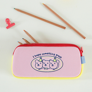 韩国dailylike可爱刺绣拼色大容量果冻熊笔袋ins学生新文具收纳包