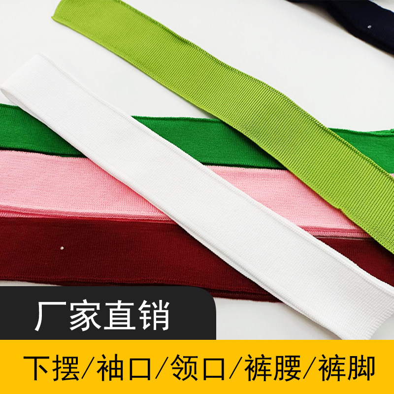 春秋纯棉针织细罗纹薄款 口下摆单层横机领V领纯色 卫衣圆领口袖
