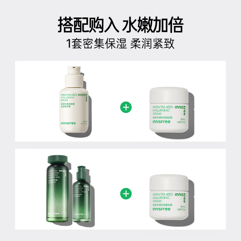 舒缓紧致 悦诗风吟绿茶籽透明质酸面霜保湿 官方正品