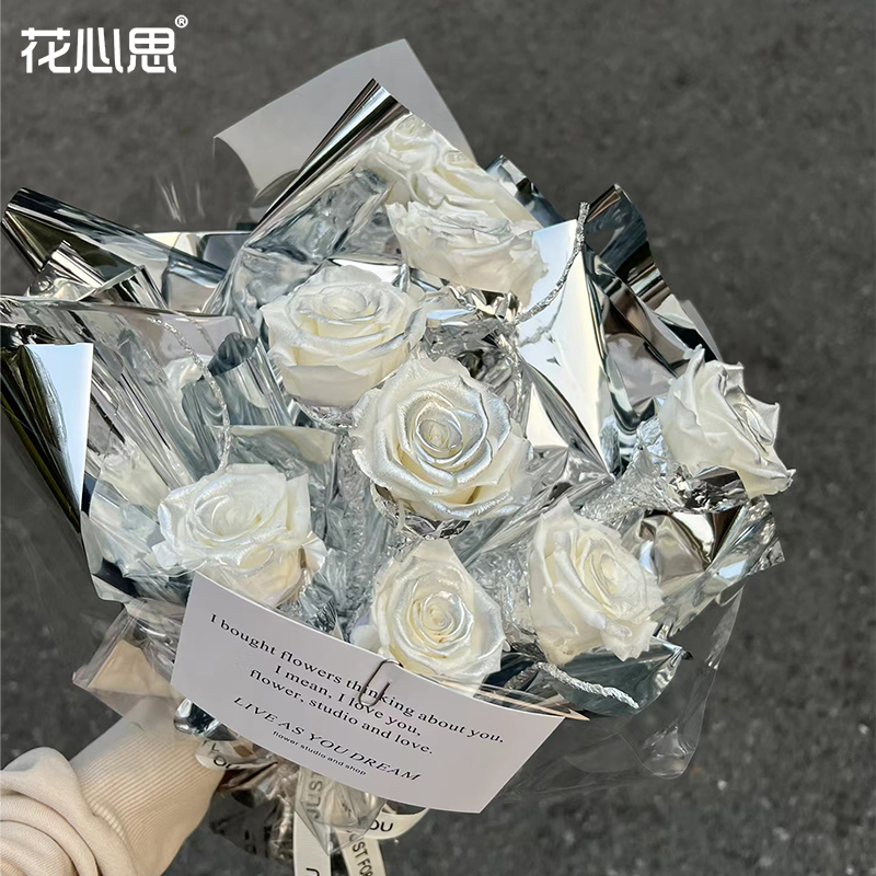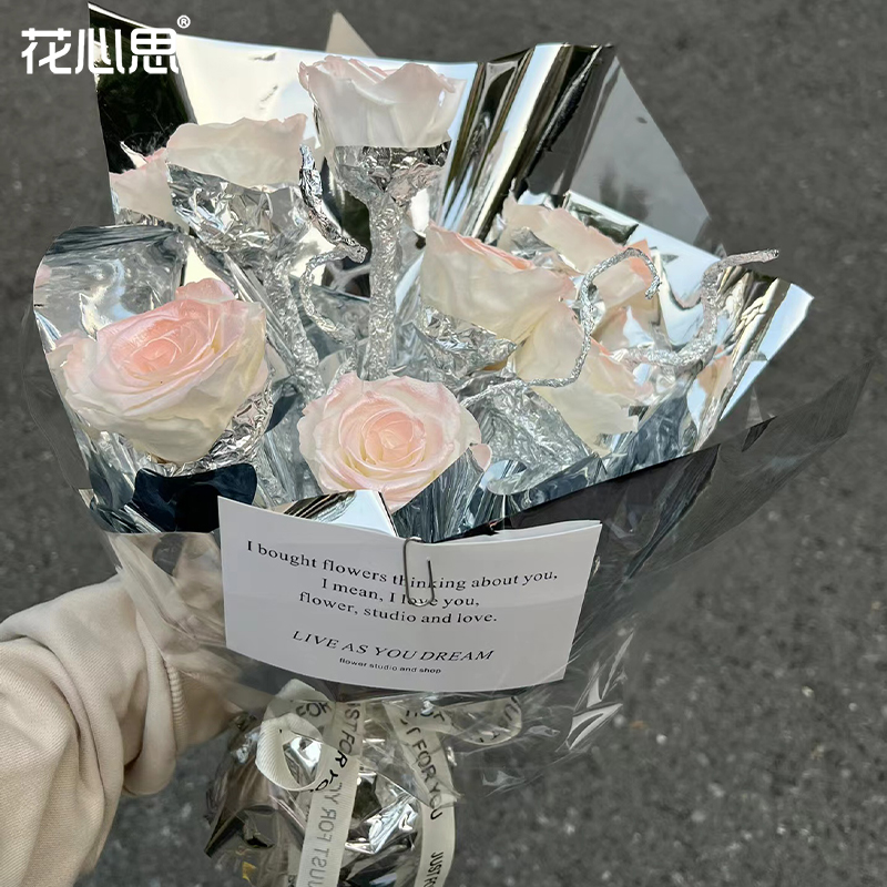 花心思镜面包装 纸反光银色花艺锡纸锡箔纸包花鲜花花束纸OPP膜
