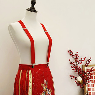 秀禾服背带女小个子提高裙子神器防脱落可调节红色吊裤 带4夹2.5cm