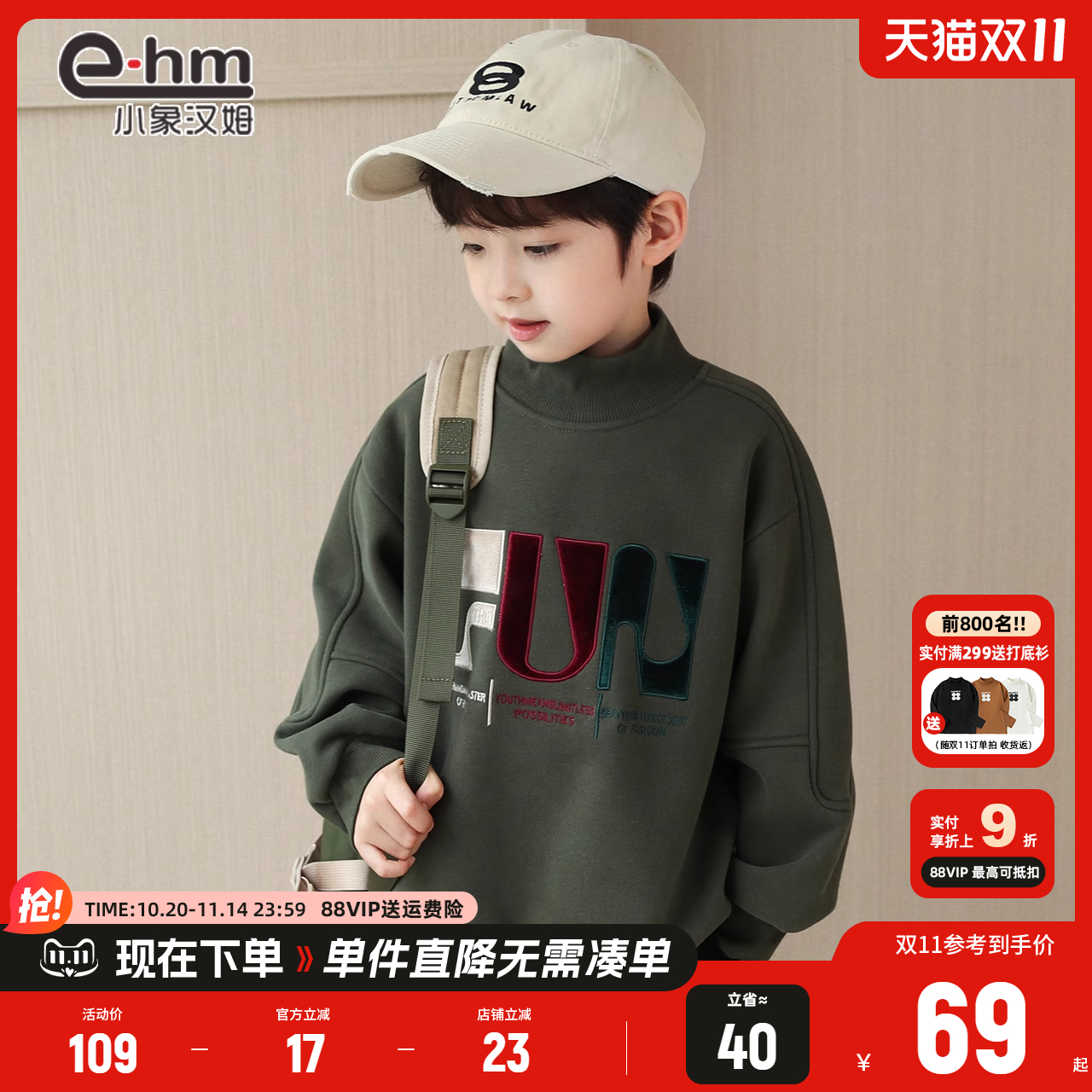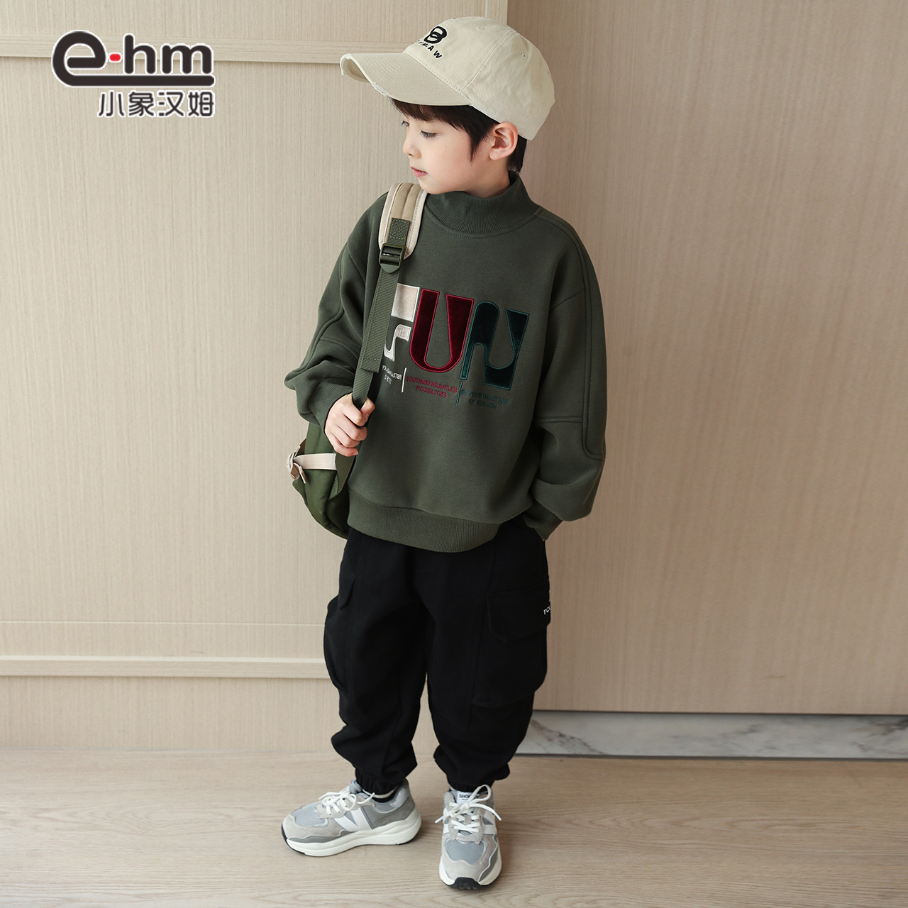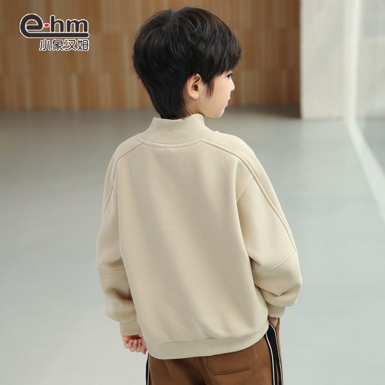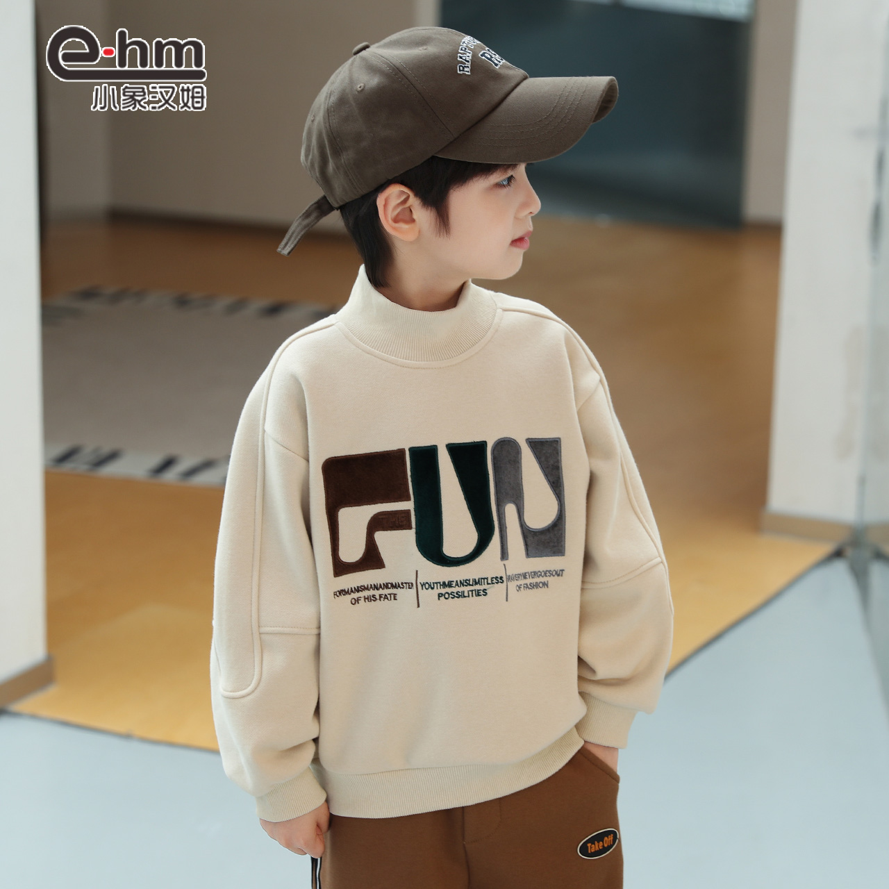 新款 冬装 2025潮 男童卫衣加绒半高领儿童一体绒打底衫 小象汉姆童装