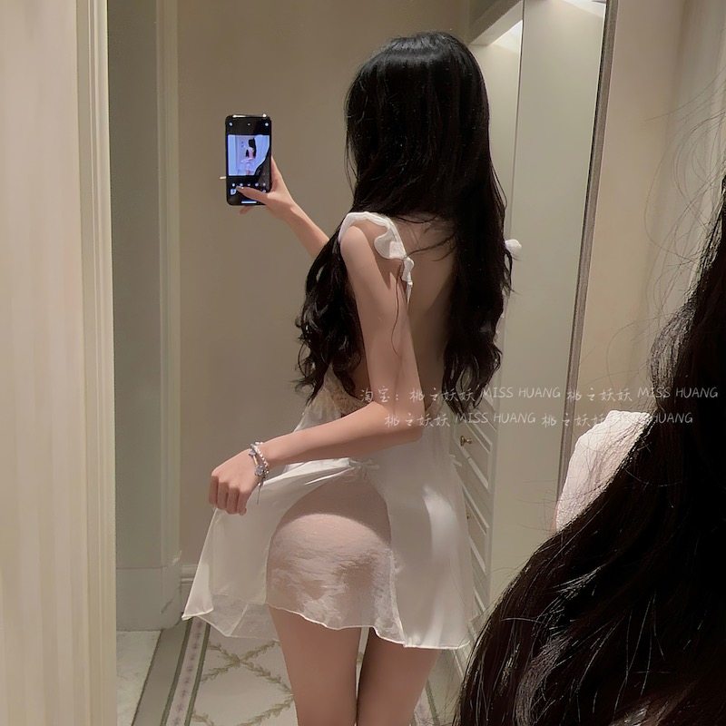 Miubby「小甜仆」甜美纯欲性感露背蕾丝边女仆制服套装 居家睡裙