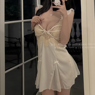 钢托聚拢带胸垫女性感睡衣冰丝吊带睡裙蕾丝镂空美背诱惑睡袍套装