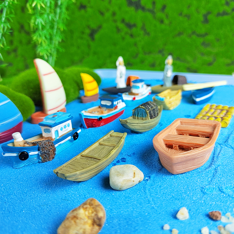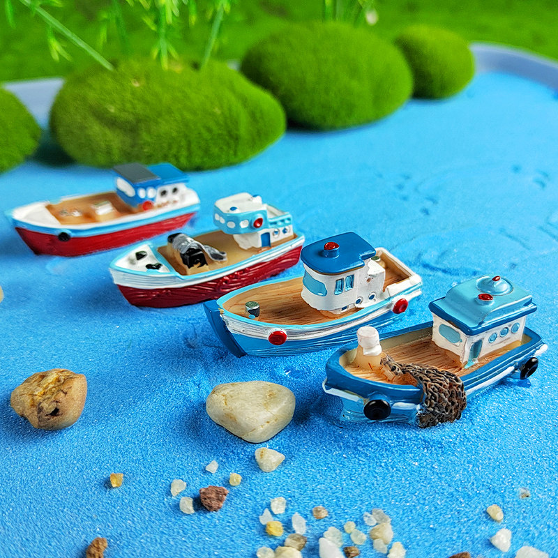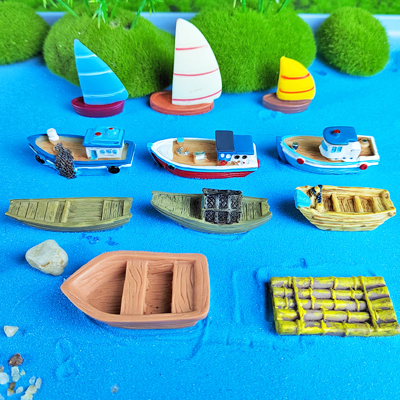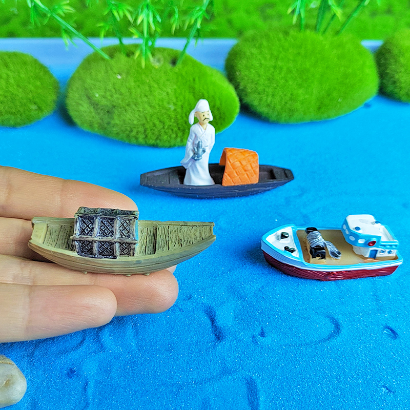 迷你小渔船竹筏游艇 饰品 假山水族鱼缸微景观造景摆件工艺船diy装